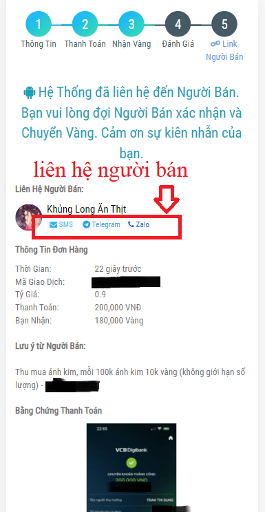 Nếu bạn đợi quá 15 phút mà chưa nhận được Vàng, vui lòng liên hệ người bán
