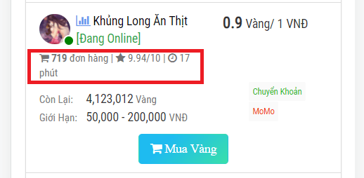 - Giới hạn: Số VNĐ bạn được phép giao dịch với thành viên này trong 1 lần mua