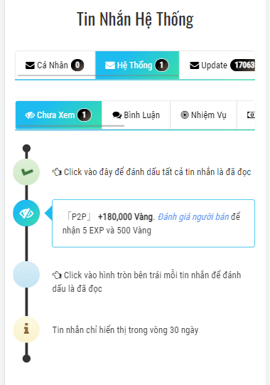 Hệ thống sẽ gửi tin nhắn nếu bạn đã nhận được Vàng từ người bán. Vui lòng xem tại Tin Nhắn Hệ Thống